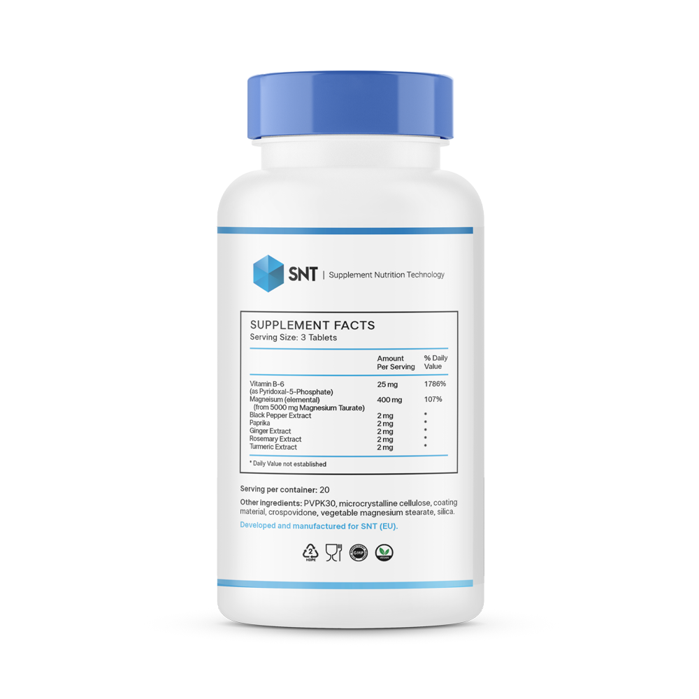 Таурат магния - хелатная форма магния и аминокислоты таурина. Вместе они являются отличными помощниками в снижении кровяного давления и оказывают пользу для сердца.Magnesium Taurate разработан с соблюдением всех стандартов качества. Добавка состоит не только из этих двух полезных компонентов,но и включает в себя другие важные витамины и микроэлементы, такие, как: витамин В-6, экстракт черного перца, паприка, корень имбиря, экстракт розмарина и куркумин, которые в комплексе положительно влияют на весь организм. Магний таурат обеспечивает защитные функции мозгу, сердцу, глазам и даже мышцам. Этот комплекс помогает предотвратить аритмию и образование тромбов.