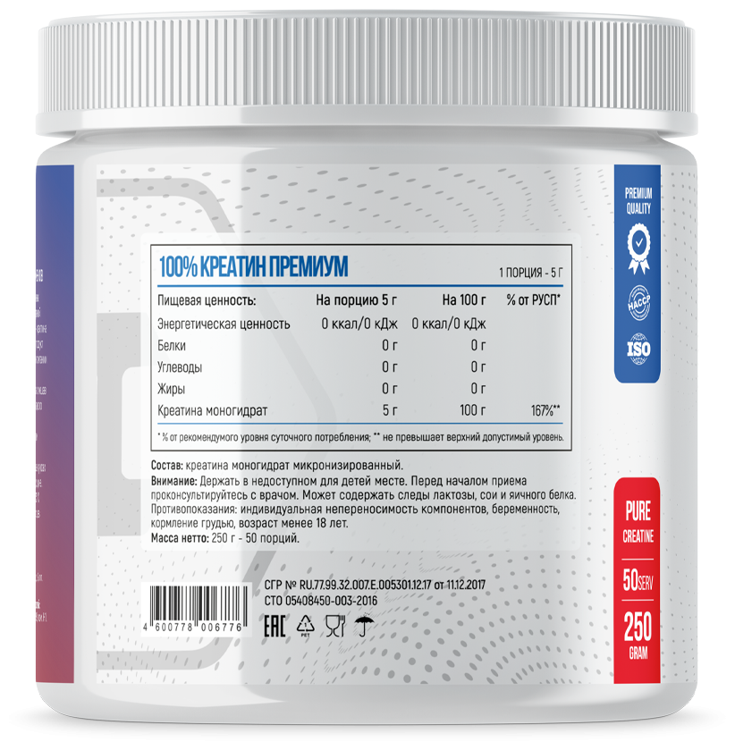 100% Creatine Premium - создан для тех, кто привык получать максимум не переплачивая. В основу добавки положено сырье премиум качества от концерна VitaJoy, прошедшее многоразовую микронизацию. Из каждой порции вы получаете 100% Креатин Моногидрат, лишенный всех сторонних примесей, в легкоусвояемой форме. Он быстро абсорбируется в желудке и дает эффект практически сразу после применения. При этом, добавка проста в приготовлении, максимально безопасна и имеет разумную цену.