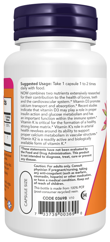 NOW Vitamin D-3 & K-2 1000 IU / 45 mcg, 120 капсул