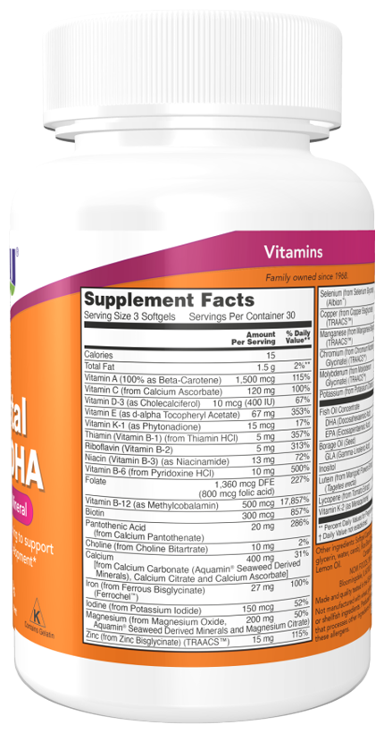NOW Pre-Natal Multi DHA 90 сгель,